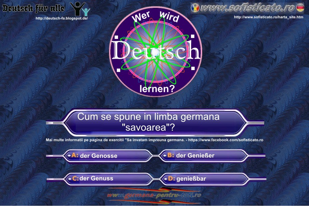 Mai multe informaţii şi lecţii pentru invăţarea limbii germane găsiţi pe site-urile de mai jos.